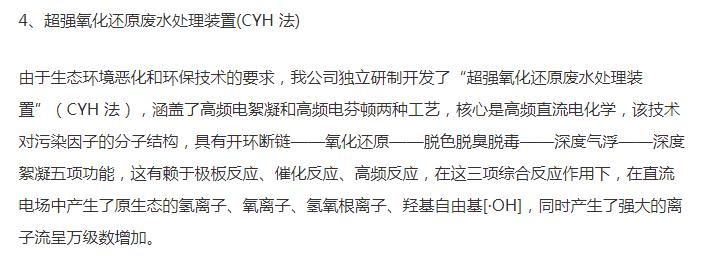 超強(qiáng)氧化還原廢水處理裝置(CYH法)處理各種有機(jī)廢水、各種重金屬?gòu)U水